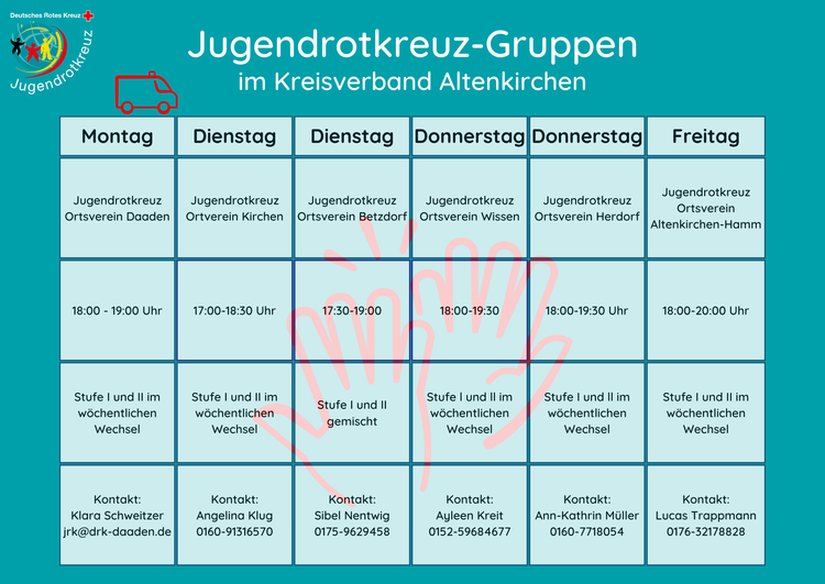Das Symbol des roten Kreuzes auf weißem Grund ist weltweit bekannt wie kaum ein anderes Zeichen. Als größte Hilfsorganisation ist das Rote Kreuz bei sozialer Benachteiligung, Krankheit oder Katastrophen überall für Sie da, ungeachtet von Religionszugehörigkeit oder Weltanschauung. Unser Kreisverband konzentriert sich im Wesentlichen auf die Arbeit für die Menschen im Landkreis Altenkirchen, ob bei Veranstaltungen oder Großschadensereignissen mit engagierten ehrenamtlichen Helfern, bei Ihnen zu Hause z. B. mit professioneller Pflege oder mit unserem Rettungsdienst. Wir helfen, wo wir können!