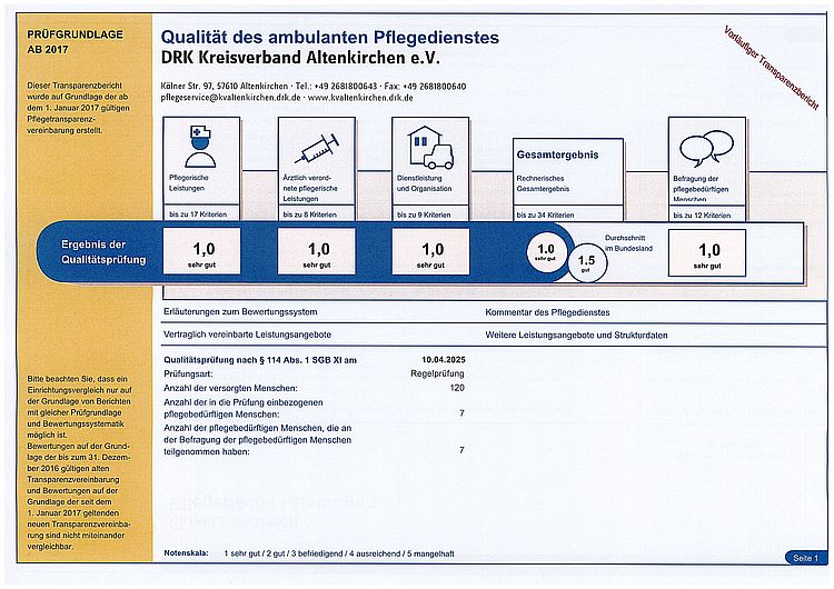 Amtlich bestätigt: Kunden, die durch unseren Ambulanten Pflegedienst betreut werden, genießen Pflege mit höchster Qualität. Die MDK-Prüfung 2025 schloss unser Pflegedienst mit: 1,0 in allen Bereichen ab!!! - Besser geht es nicht!!!